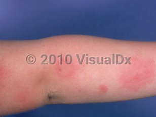Most patients experience accompanying pruritus or a burning sensation, and rarely pain has been described. Systemic symptoms are uncommon but may occur after prolonged exposure of a large body surface area to inciting radiation; symptoms may include headache, nausea, dizziness, wheezing, dyspnea, and syncope. Rarely, severe attacks are associated with anaphylactic shock.