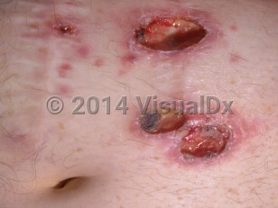 In general, cutaneous disease commonly presents as one or more painful ulcers that can become necrotic. Notably, ulcers tend to enlarge rapidly. If left untreated, progression is rapid and massive destruction of skin and subcutaneous tissues may ensue.