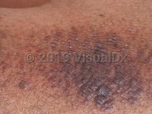Clinically, LA manifests as hyperpigmented papules that coalesce to form thick plaques with a "seafloor-like" rippled appearance. The most common location is the pretibial area, but the thighs, forearms, and back can also be involved. LA and macular amyloidosis (MA) are believed to exist on a spectrum and are mainly differentiated by the nature of the primary lesion (papules and plaques in LA and macules and patches in MA) and histopathologic findings. Some patients also display features of both LA and MA, which is termed "biphasic amyloidosis."
