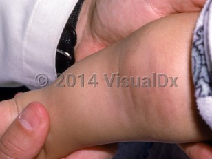 Tufted angioma typically presents at birth (15% of cases) or within the first 5 years of life (50% of cases) as a violaceous plaque or nodule that may be painful. Rarely, it presents later in childhood or in early adulthood. There may be a slight male predominance.