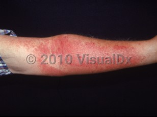 Envenomation by Loxosceles species (loxoscelism) can result in dermonecrosis and, less commonly, a potentially fatal systemic illness that includes hemolysis and rhabdomyolysis, with subsequent renal failure. Loxosceles venom contains cytotoxic, proteolytic, coagulopathic, and hemolytic components. The primary toxic component is sphingomyelinase D, which is largely responsible for necrosis and hemolysis. Hyaluronidase causes the characteristic gravitational spread of the lesion.