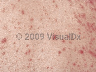 Clinical image of Neutrophilic eccrine hidradenitis - imageId=3839. Click to open in gallery.  caption: 'A close-up of showers of small erythematous papules.'