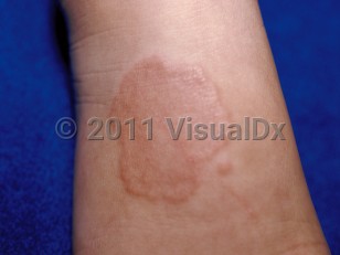 There are 3 principal variants of GA: localized (75% of cases), generalized (or disseminated), and subcutaneous (also known as pseudo-rheumatoid nodules). Patch GA is a variant of localized GA in which the plaques are extremely thin and barely palpable. A fourth type – perforating GA – refers to rare lesions that demonstrate histologic evidence of transepidermal extrusion of degraded collagen. Actinic granuloma presents with similar lesions and is thought by some to represent GA occurring in sun-damaged skin. Palmoplantar GA is a rare variant favoring the palms.