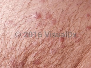 Clinical image of Non-Hodgkin lymphoma - imageId=69370. Click to open in gallery.  caption: 'A close-up of numerous smooth, dull, pink papules.'