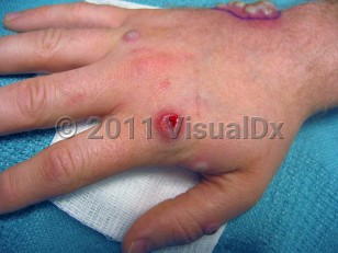 - The eruption that many of these patients develop does not begin on the face, hands, and legs and may not be widespread, nor are the lesions initially numerous. Many patients have presented with a small number of lesions (usually fewer than 10; in some cases 1 or 2) involving the genital or perianal region before the rash spreads to the extremities. These lesions can be, but are not always, quite painful and/or pruritic and may leave scarring.