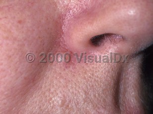 Clinical image of Common acquired nevus - imageId=329792. Click to open in gallery.  caption: 'A skin-colored papule (intradermal nevus) at the nasal alar crease.'