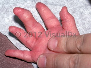 Proteus syndrome is a hamartomatous disorder characterized by progressive, asymmetrical overgrowth of various tissues, including skin, bone, soft tissue, and internal organs. It is caused by a mosaic activating mutation in AKT1 on chromosome 14. It is extremely rare, with the sexes affected about equally.