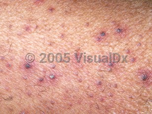 Scurvy is a relatively rare diagnosis in the developed world. Pathognomonic clinical findings of scurvy include gingival bleeding and perifollicular petechiae with corkscrew hairs. Other common features include vascular fragility, manifesting as purpura, petechiae, ecchymoses, and gastrointestinal bleeding. Spontaneous hemorrhage into muscles, soft tissues, and joints can cause painful hematomas and hemarthroses. Symptoms include fatigue, weakness, muscle cramping, and malaise as well as cognitive impairment and mood disturbances.