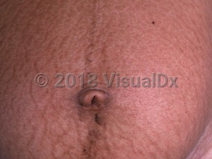 Periods of rapid growth, such as puberty, pregnancy (striae gravidarum), training with weight lifting, rapid weight gain, and adolescent growth spurts, are common triggers. Striae also commonly occur in the setting of obesity. As 60%-70% of the US population is labeled as overweight or obese, the prevalence of striae from obesity is estimated at 40%. The skin findings themselves are rarely symptomatic, but they may occasionally indicate an underlying disease state (such as Cushing syndrome). In Marfan syndrome, striae are seen in around two-thirds of patients. Striae tend to flatten and become less conspicuous over time.