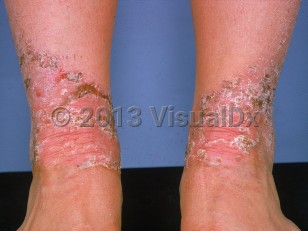 Acquired acrodermatitis enteropathica (AAE) is an acquired condition that occurs as a result of zinc deficiency. In AAE, skin manifestations may be accompanied by alopecia and diarrhea, but this classic triad is present in only 20% of cases. In mild to moderate deficiency, the clinical picture is that of thin, scaly plaques that may resemble psoriasis. With a more severe deficiency, it will manifest as a periorificial, acral, and intertriginous dermatitis that has eczematous features, but may also be vesiculobullous or even pustular. The eruption tends to be symmetrical.