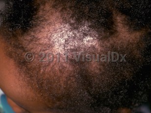 Scarring alopecias, including drug-induced lichen planopilaris (LPP), folliculitis decalvans, and erosive pustular dermatosis of the scalp (EPDS), have been linked to tyrosine kinase inhibitors, PD-1 inhibitors, TNF-α inhibitors, and EGFR inhibitors.
