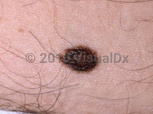 An atypical nevus is a benign melanocytic lesion that appears clinically atypical with asymmetry, large size, irregular or ill-defined borders, and/or varied coloration. A dysplastic nevus (also referred to as a Clark nevus) is a histopathologic term that describes a melanocytic proliferation showing architectural disorder and cytologic atypia and sharing some features of melanoma. Dysplastic nevi usually appear clinically atypical and atypical nevi may be dysplastic; however, the clinical and histopathologic terms do not always completely correlate.