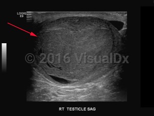 A malignant tumor of the testis (one or both), most often of germ cell origin (95%), which may be diagnosed as primary or metastatic cancer. Common presentation includes painless swelling, palpable mass or enlargement in the testis, orchidalgia, fatigue, and infertility. Other symptoms may be flank pain and dull or heavy abdominal sensation. Patients with metastatic disease, depending on the location of the metastasis, may present with gastrointestinal (GI) symptoms (nausea, vomiting, GI hemorrhage, anorexia), edema of extremities, bone pain, back pain, central nervous system abnormalities, cough, dyspnea, or neck mass. Patients with cryptorchidism have greater risk for testicular cancer.