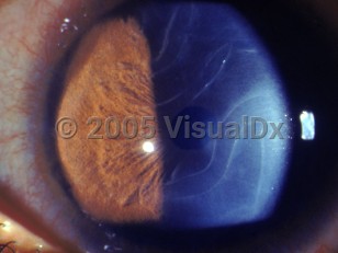 In PCG, abnormal neural crest cell migration results an isolated trabecular dysgenesis with impaired aqueous outflow. Specifically, irregularities in iris development and incorrect attachments to the trabecular meshwork thwart the flow of the aqueous into an otherwise normal canal of Schlemm.