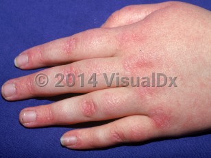 Cutaneous lesions may precede muscle disease by anywhere from weeks to more than 4 years and may be extremely pruritic. Exposure to sunlight may exacerbate the cutaneous lesions. Other characteristic features may include flat erythema of the upper back and posterior neck and shoulders (shawl sign) as well as a similarly presenting macular erythema of the anterior neck and upper chest (V sign) that can worsen with ultraviolet (UV) exposure. Patients may also have poikiloderma over the lateral hip (holster sign). Myositis (inflammation of muscle) usually develops insidiously, but sometimes abruptly, or may not occur at all (amyopathic or hypomyopathic dermatomyositis).