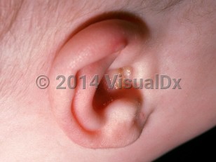 The typical clinical presentation is a solitary, verrucous or smooth papule or nodule on the head or neck in an otherwise healthy child. The majority of lesions are first noted by parents within the first 2 years of life, if not at birth. The largest case series found a 2:1 male predominance. Lesions are almost invariably painless.
