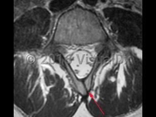 Spina bifida occulta may be suspected due to the presence of cutaneous lesions such as a dermal sinus tract, sacral dimple, hypertrichosis, hemangiomas, or a subcutaneous lipoma. Cases of spina bifida occulta can present at any age, and the severity of symptoms varies from asymptomatic to severe neurologic impairment due to tethered cord syndrome, secondary to abnormal tension on the spinal cord. Signs and symptoms of tethered cord syndrome secondary to spina bifida occulta include gait changes, bowel / bladder dysfunction, leg and back pain, and orthopedic deformities.