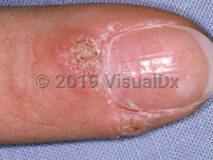 In adults, warts are especially common among transplant patients and in individuals immunosuppressed due to human immunodeficiency virus infection (HIV), malignancy, or medications. They are also common in adults who do wet work, as well as in nail biters and nail pickers. There is a subset of ungual warts due to HPV 16 and 18 that are at higher risk of transforming into squamous cell carcinoma.