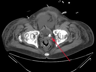 When urine is chronically retained in the bladder, any nidus, such as a small fragment of a stone passed from the ureter, a bladder diverticulum, or a foreign body such as a ureteral stent or Foley catheter, can serve as a site for the precipitation and deposition of uric acid. In most retrospective studies of bladder stone composition, nearly all stones (as many as 80%) are entirely composed of uric acid, and most of the remainder contain a substantial portion of uric acid. Interestingly, neither gout or hyperuricemia appear to be contributory factors in the formation of bladder calculi. This is qualitatively different than nephrolithiasis, which in the United States is primarily due to calcium oxalate or calcium phosphate stones.